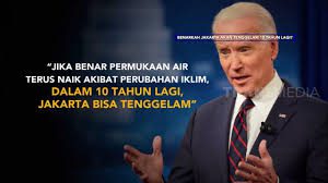 Pemindahan ibu kota negara IKN RI dari Jakarta di Pulau Jawa ke Nusantara di Pulau Kalimantan makin serius dilakukan pemerintah. Sebenarnya hal ini pernah disinggung Presiden Amerika Serikat Joe Biden di 2021. Ia mewanti-wanti ancaman besar bakal melanda Indonesia. Ia menyebut Jakarta akan tenggelam dalam 10 tahun kedepan. Hal ini dikatakannya ketika berbicara soal perubahan iklim dalam pidato sambutan di kantor Direktur Intelijen Nasional Amerika Serikat kala itu. Menurutnya perubahan iklim adalah ancaman terbesar akibat perubahan iklim yang saat ini sedang menghantui seluruh dunia. Perubahan iklim menyebabkan naiknya permukaan laut dan akan menyebabkan ribuan orang kehilangan tempat tinggal, mata pencaharian dan kehidupan. ( tbu )