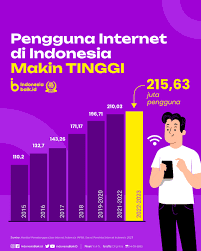 Pengguna internet di Indonesia menembus 221 juta orang. Artinya, 79 setengah persen dari total penduduk Indonesia yang melebihi 278 juta orang aktif di dunia online. Penetrasi pengguna internet di Indonesia terus meningkat. Pada 2022, data Asosiasi Penyelenggara Jasa Internet Indonesia APJII menyatakan jumlah pengguna internet adalah 78 koma 19 persen dari total penduduk Indonesia. Pengguna internet di Indonesia tumbuh pesat sejak periode sebelum pandemi. Sebelum pandemi, jumlah pengguna internet di Indonesia hanya 175 juta kemudian melesat menjadi 210 juta pada 2022. Artinya, jumlah pengguna internet bertambah 11 juta dalam satu tahun. ( tbu )